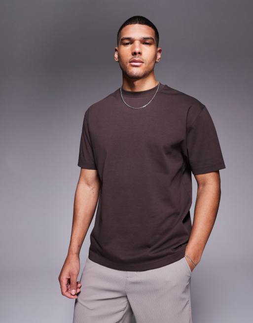 ASOS DESIGN – Brun, kraftig t-shirt med avslappnad passform
