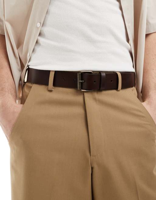 ASOS DESIGN – Brun läderbälte med guldfärgade, polerade metalldetaljer