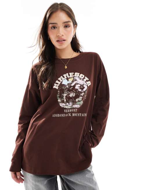 ASOS DESIGN – Brun, långärmad topp med Minnesota-tryck