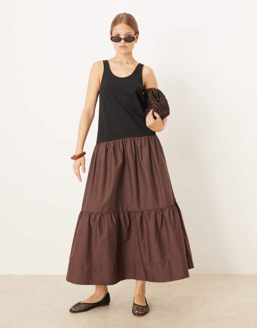 ASOS DESIGN – Brun maxiklänning i hybriddesign med djup ringning