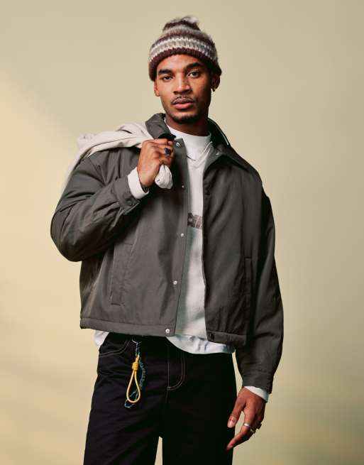 ASOS DESIGN – Brun, mellantung, kort harrington-jacka i oversize