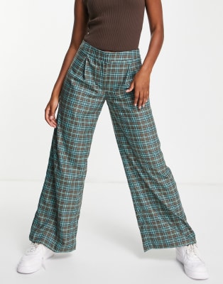 ASOS DESIGN – Brun och grön rutig kostym med högt slagsprund