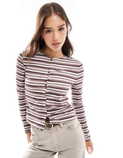 ASOS DESIGN – Brun, randig och kort kofta med knäppning