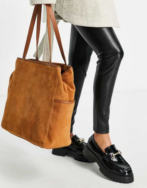 ASOS DESIGN – Brun shoppingväska i mocka med läderdetaljer