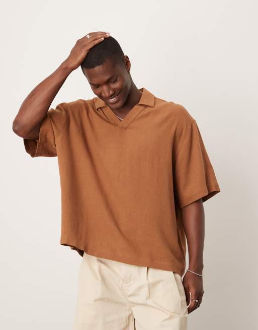 ASOS DESIGN – Brun skjorta i dra på-modell i linnemix med boxig oversize-passform