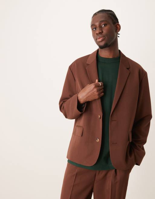 ASOS DESIGN – Brun, slouchy kostymkavaj i twill med boxig passform