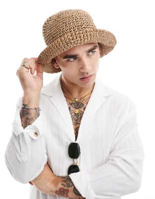 ASOS DESIGN – Brun solhatt i stråmix