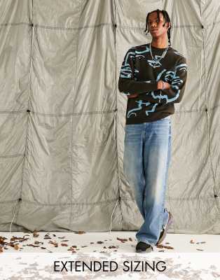ASOS DESIGN – Brun stickad tröja med handmålat ansikte