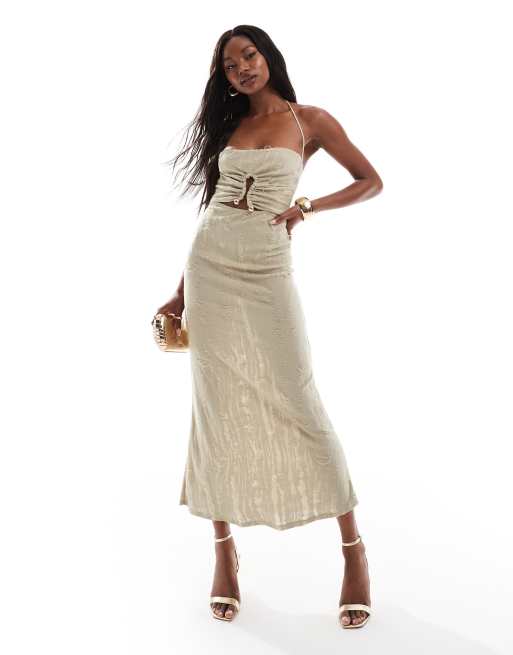 ASOS DESIGN – Brun, strukturerad midiklänning med smala axelband