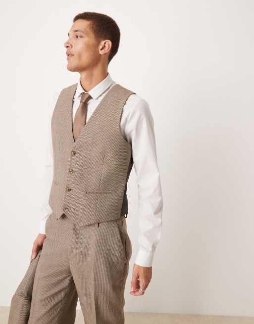 ASOS DESIGN – Brun, strukturvävd kostymväst med smal passform