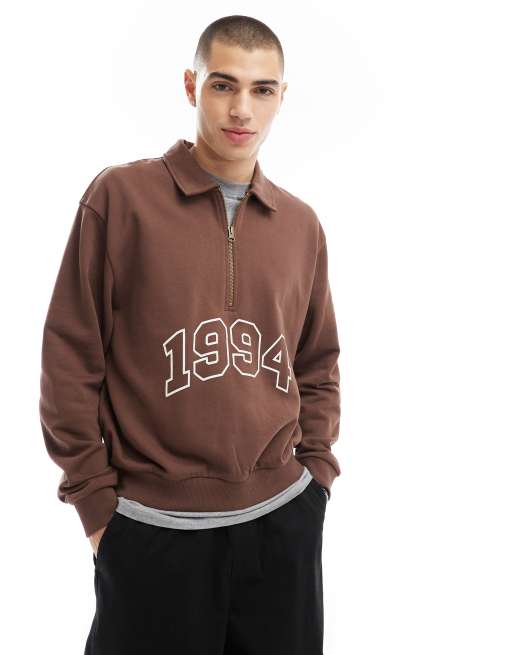 ASOS DESIGN – Brun sweatshirt med boxig oversize passform, kantband och pikékrage