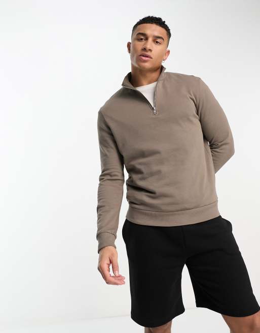 ASOS DESIGN - Brun sweatshirt med halv dragkedja