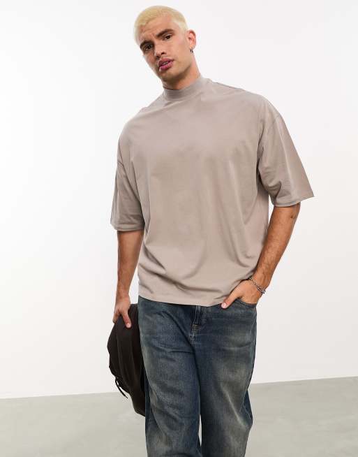 ASOS DESIGN – Brun t-shirt i oversize med halvpolokrage