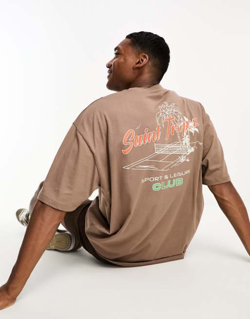 ASOS DESIGN – Brun t-shirt i oversize med sporttryck i retrostil baktill