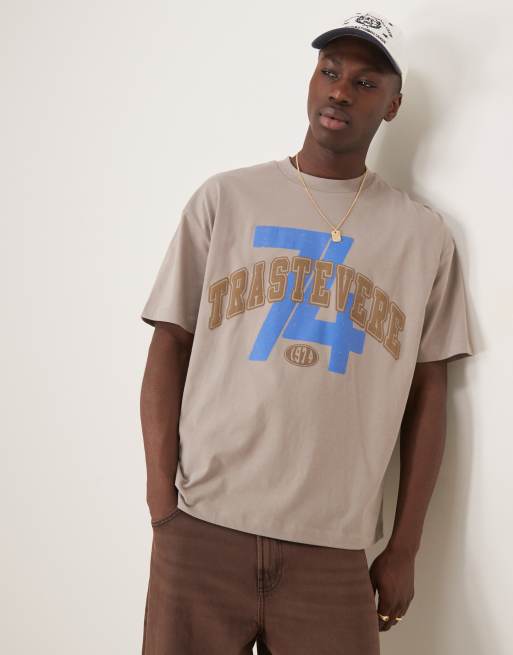 ASOS DESIGN – Brun t-shirt i oversize med stadstryck framtill