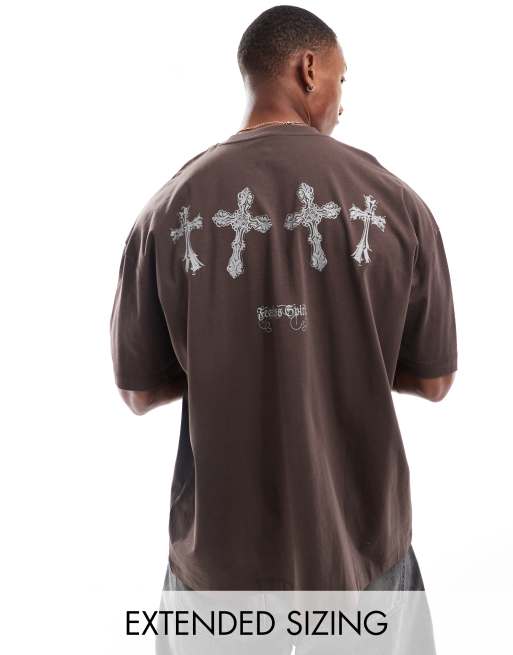 ASOS DESIGN – Brun t-shirt i oversize med tryck baktill