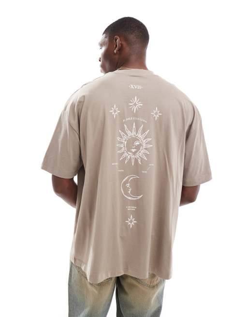 ASOS DESIGN – Brun t-shirt i oversize med tryck baktill