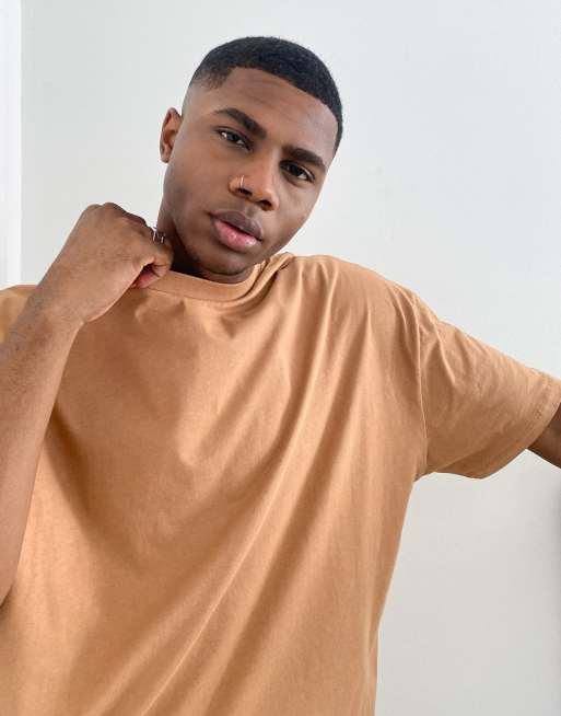 ASOS DESIGN – Brun t-shirt med rund halsringning i oversize-modell