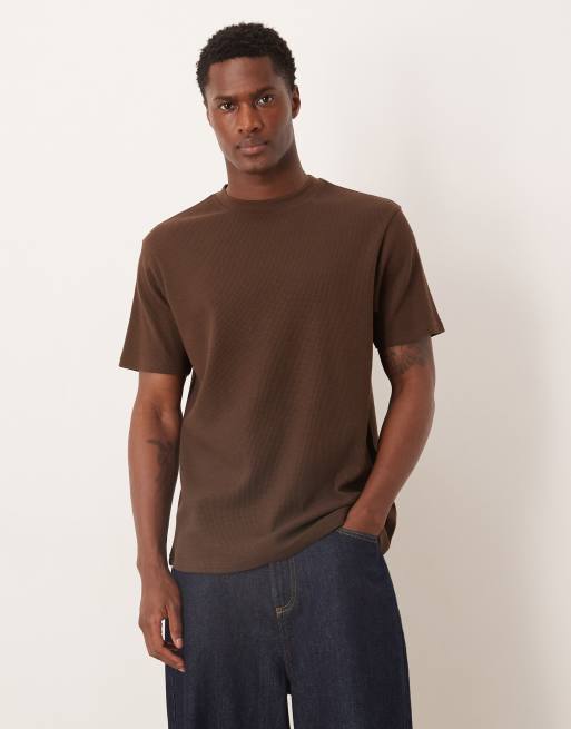 ASOS DESIGN – Brun, våfflad, enkel t-shirt i regular fit