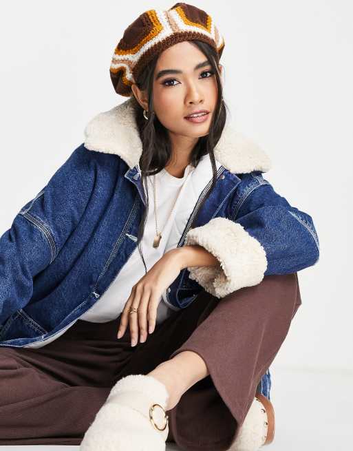 ASOS DESIGN – Brun, virkad basker med märken i mocka