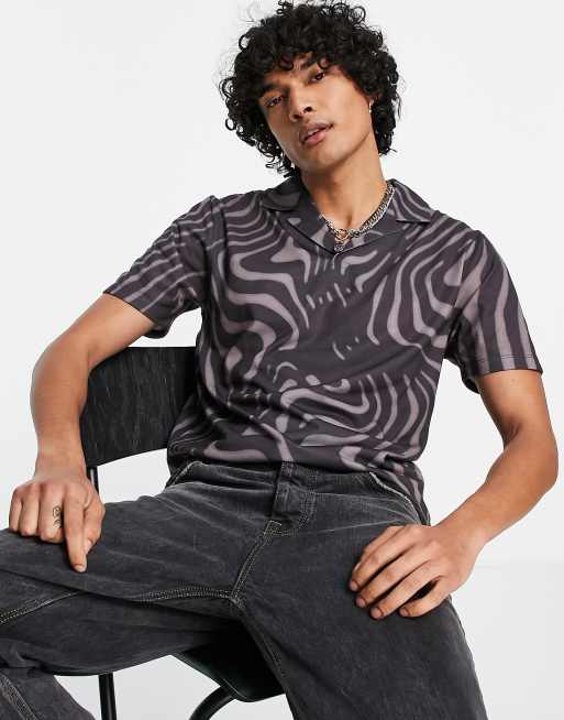 ASOS DESIGN – Brun virvelmönstrad pikétröja med platt krage