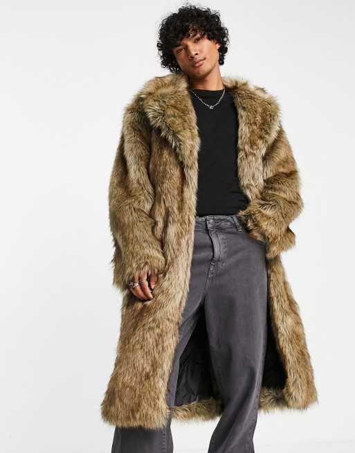 ASOS DESIGN – Brun ytterrock i fuskpäls och oversize