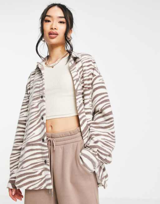ASOS DESIGN – Brun zebrarandig skjortjacka i oversize