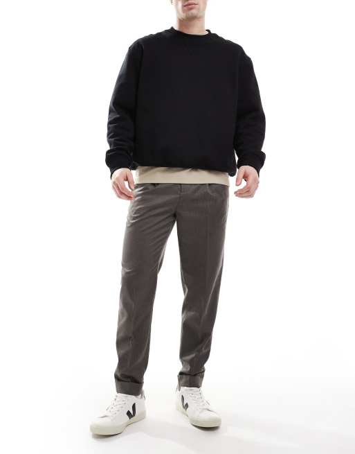 ASOS DESIGN – Bruna, avsmalnande byxor i mikrotextur
