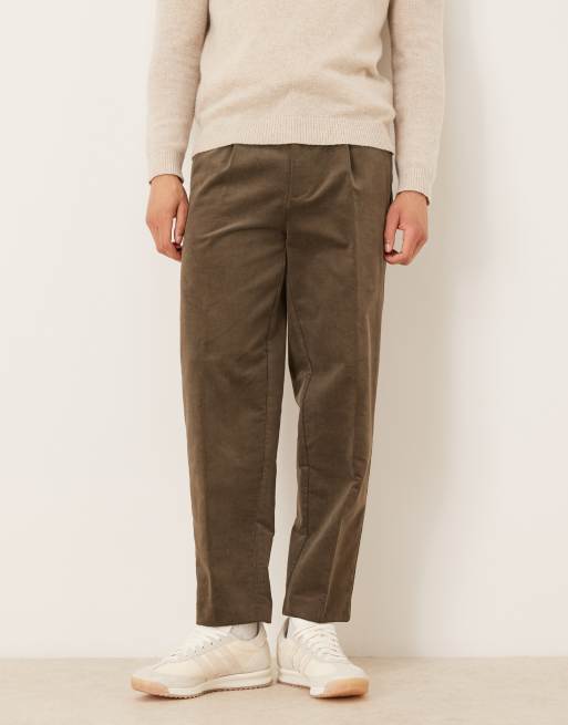 ASOS DESIGN – Bruna, avsmalnande, plisserade finbyxor i bomullsrikt tyg och oversize av manchester