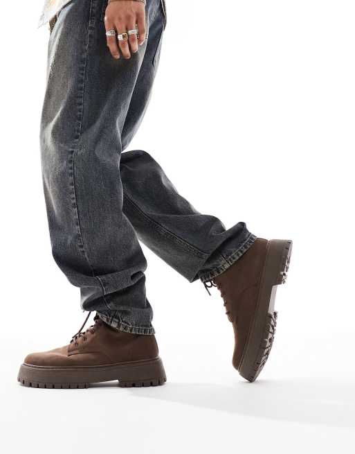 ASOS DESIGN – Bruna boots med snörning och upphöjd, grov sula i mockaimitation