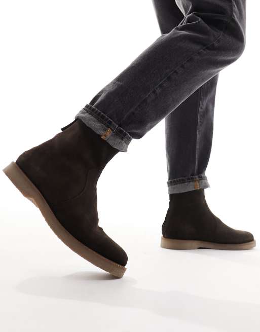 ASOS DESIGN - Bruna chelseaboots i mocka med crêpe-sula