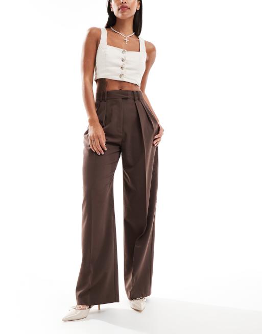 ASOS DESIGN – Bruna, figursydda byxor med vida ben
