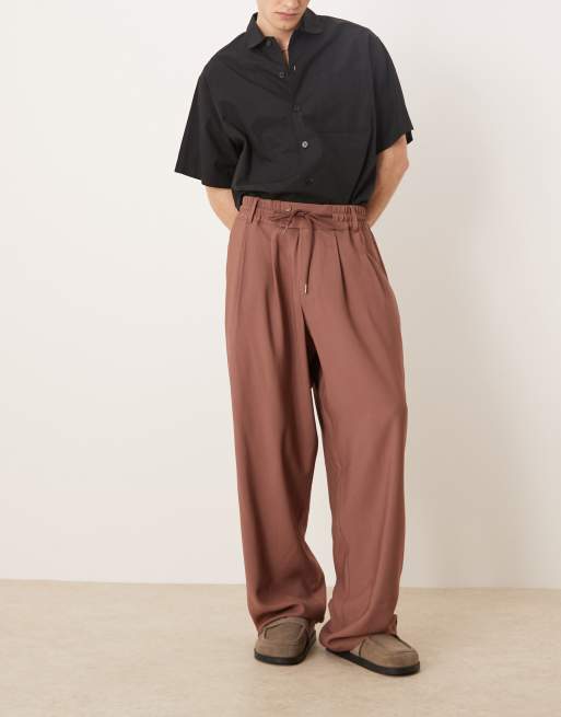 ASOS DESIGN – Bruna finbyxor med ledig passform och brett, elastiskt midjeband