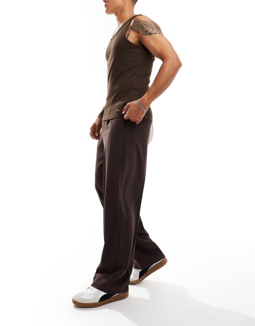 ASOS DESIGN – Bruna finbyxor med vida ben och veck framtill