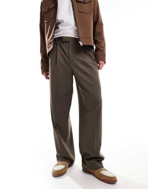 ASOS DESIGN – Bruna finbyxor med vida ben och veck