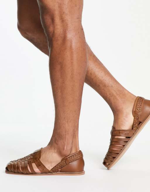 ASOS DESIGN – Bruna flätade sandaler i läder