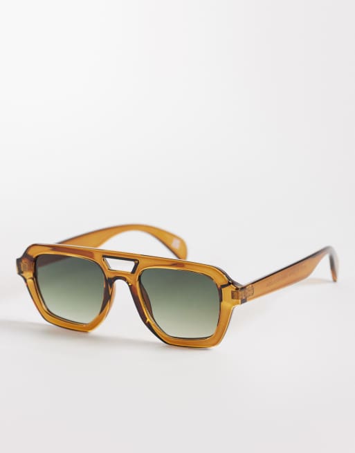 ASOS DESIGN – Bruna, genomskinliga, vinklade pilotsolglasögon med gröna glas