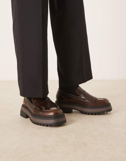 ASOS DESIGN – Bruna, grova loafers med fransar