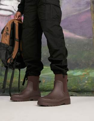 ASOS DESIGN – Bruna gummistövlar med scubadetalj