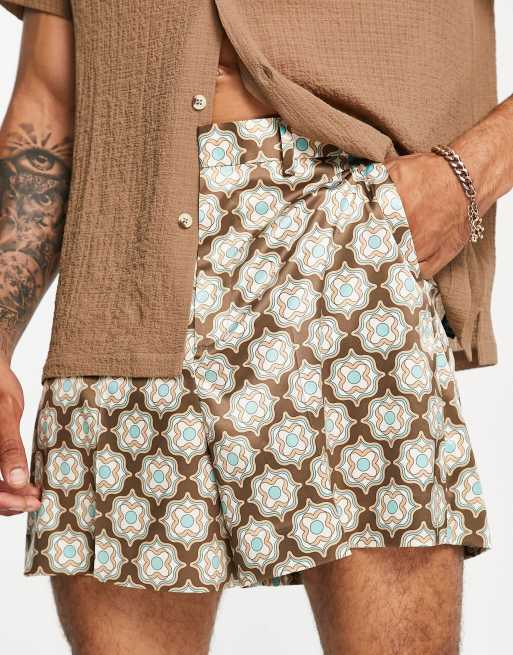 ASOS DESIGN – Bruna, korta finshorts i bermudastil och satin med geometriskt mönster
