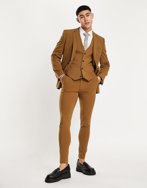 ASOS DESIGN – Bruna kostymbyxor med supersmal passform