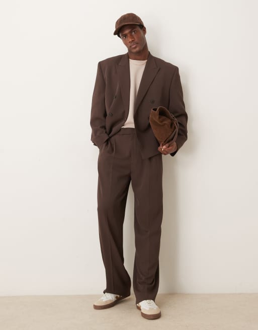 ASOS DESIGN – Bruna kostymbyxor med vida ben