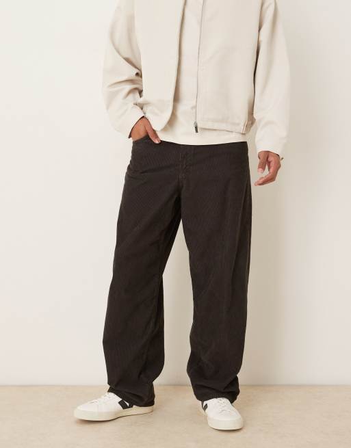 ASOS DESIGN – Bruna, lediga, raka manchesterbyxor