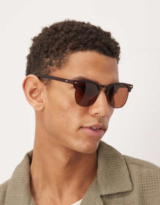 ASOS DESIGN – Bruna, matta, spräckliga solglasögon i metall med bruna glas
