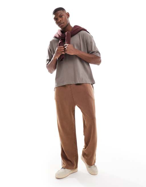 ASOS DESIGN – Bruna mjukisbyxor med raka ben och sidoränder