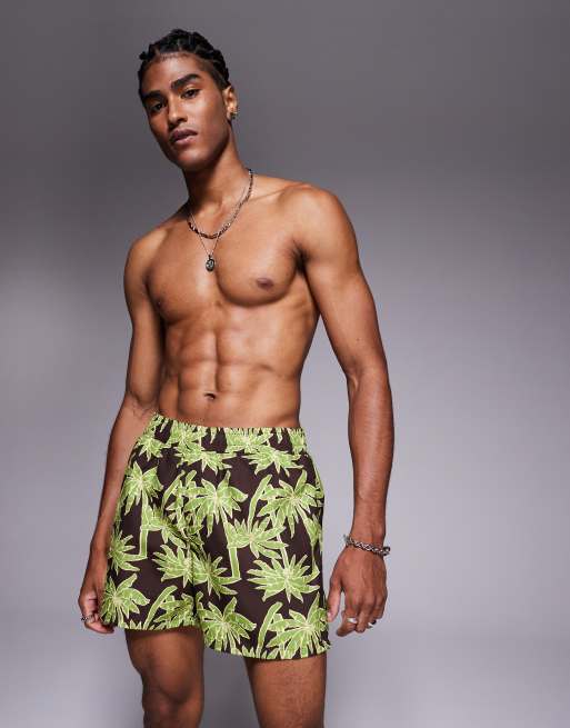 ASOS DESIGN – Bruna, palmmönstrade, korta badshorts