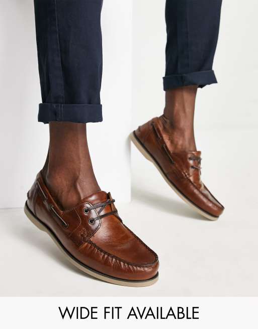ASOS DESIGN – Bruna seglarskor i läder med gummisula