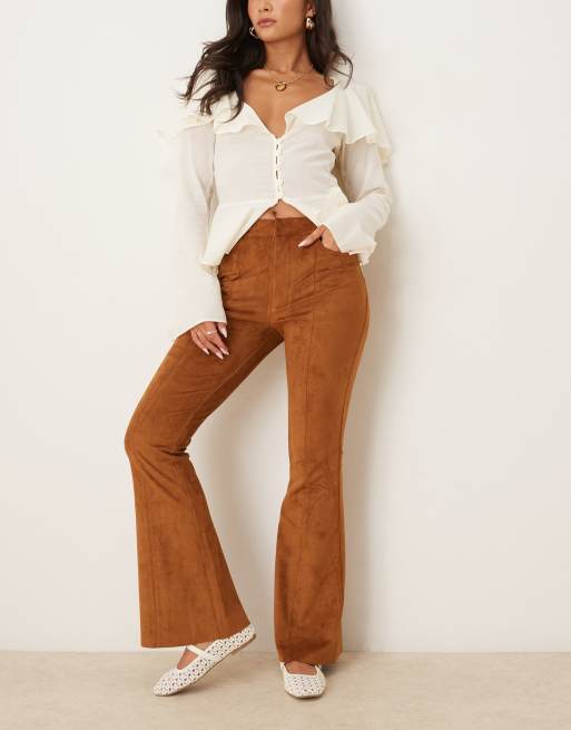 ASOS DESIGN – Bruna, utsvängda byxor i mockaimitation