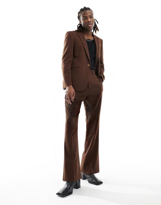 ASOS DESIGN – Bruna, utsvängda kostymbyxor med hög midja i ylletyg