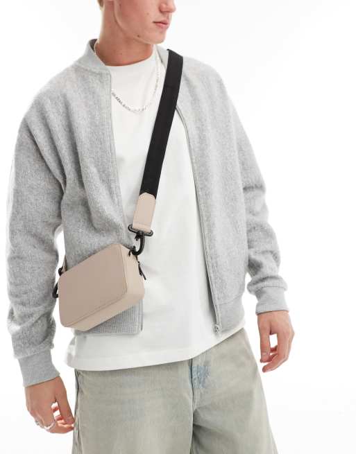 ASOS DESIGN – Brungrå, gummerad kameraväska med axelrem